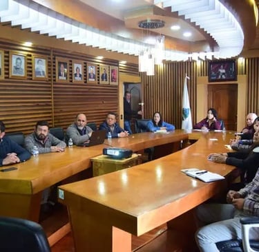 Reunión con las autoridades del Municipio de Pueblo Nuevo, Durango; encabezadas por la Presidenta Municipal C. NANCY FLORES ORNELAS, el Secretario de Ayuntamiento ING. FRANCISCO JAVIER BARRÓN PÉREZ, la Directora Municipal de Medio Ambiente, ING. EDITH GUADALUPE GARCÍA RODRÍGUEZ, y los Regidores Integrantes de la Comisión de Medio Ambiente del Cabildo, con representantes de la empresa AyS Negocios Ambentales y tecnológicos S.A.P.I. de CV, Adrián Ariza, Eduardo Carrasco y Miguel Alvarado, celebrada el 4 de noviembre del 2025, donde se presentó el proyecto de Combate al Cambio Climático "BIOCARBÓN EL SALTO", y se establecieron las bases de trabajo, beneficios ambientales y sociales, apoyos de la empresa al Municipio y se estableció el interés del Municipio en la carta expedida por el Municipio por conducto de la Presidenta Municipal.